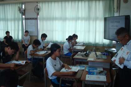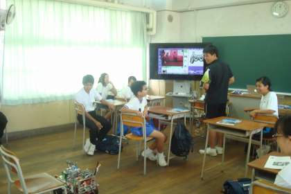 大阪府立大学工業高等専門学校の先生に来ていただき、防災ALTの生徒対象に授業をしていただきました。ロボットができるまでの経緯、またレスキューロボットについていろいろなお話を聞かせていただきました。