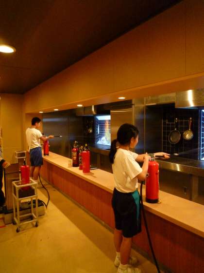 昼からは阿倍野防災センターで体験学習を行いました。地震のシミュレーションや消火体験したり、煙中体験や震度7の揺れを体験しました。日用品を使っての応急処置の講習も受けました。