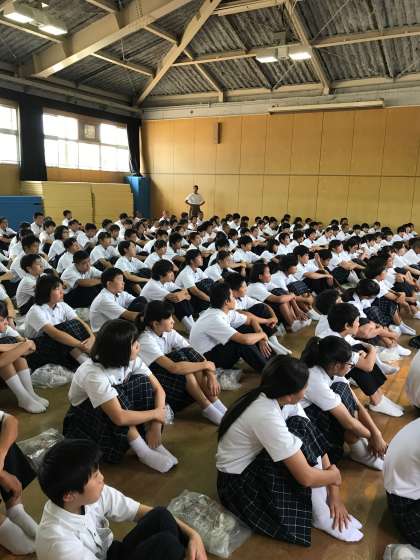 さぁ2学期がスタートしました。2年生学年集会では、最初に学年目標「あじみ」の確認をしました。原点に戻って、まずは「あ」からしっかり意識していきましょう。