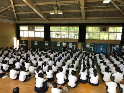 今朝は大室先生から文化祭の取り組みの「モザイク画」についてと「キャリア学習」(高校の先生による授業体験)の話がありました。先週の水泳大会を皮切りに2学期は、盛りたくさんの行事があります。少し、涼しくなっています。体調崩さないよう頑張ってほしいです。