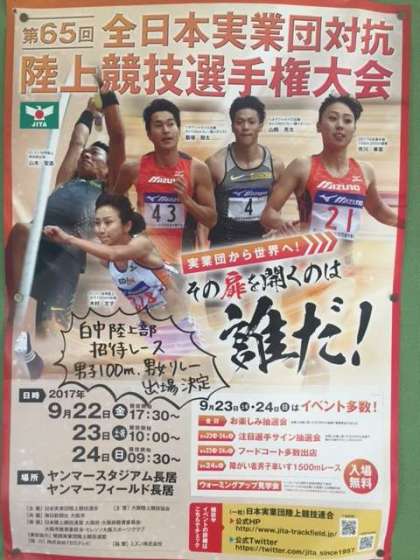 今日はヤンマースタジアム長居で行われている、全日本実業団陸上競技大会に来ています。