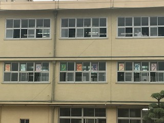 を生徒議会メンバーで画用紙に書き、3年生校舎に掲示しています。