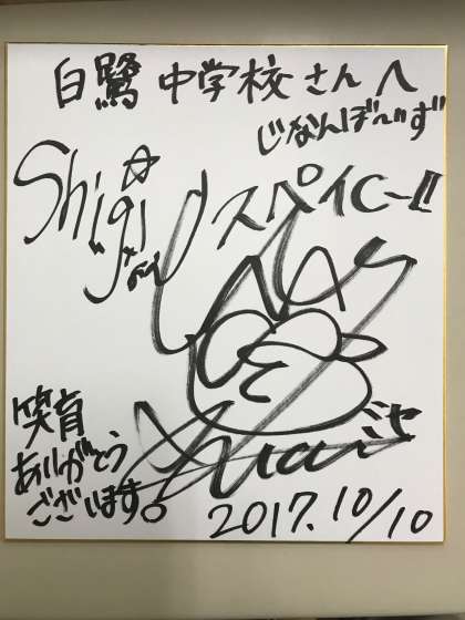 【朝一で大阪へ!大阪市立白鷺中学生の1年、2年生の笑育を担当させて頂きました(^^)!さすが本場!powerハンパなかったです!生徒の皆さん来週の発表も頑張ってね!控え室には素敵なメッセージとイラスト!超嬉C〜!たこ焼きだけギリ食べて今から東京戻りますー☆笑 】