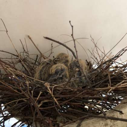 チャレンジルームの近くにできていた、鳩の巣ですが、ついに卵がかえりました!