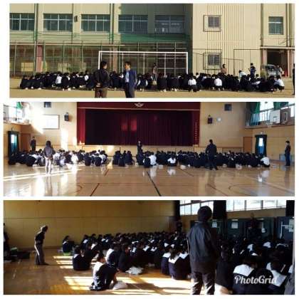 (写真中)、3年が小体育館(写真下)で行われています。