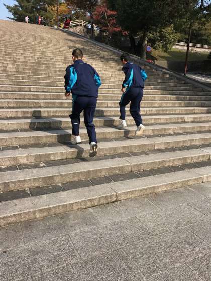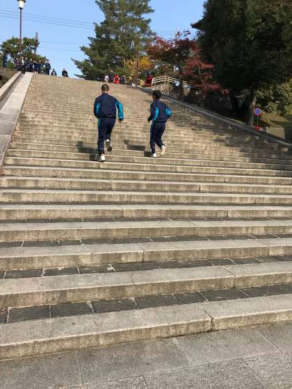 猿沢池付近では、ミッション「52段ダッシュ」です。がんばってます。