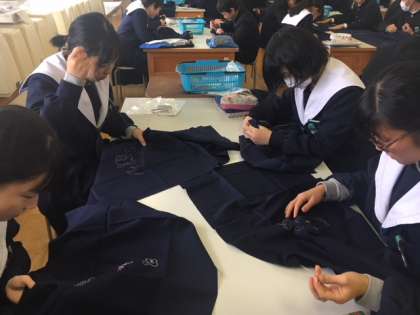 3年家庭科刺し子実習