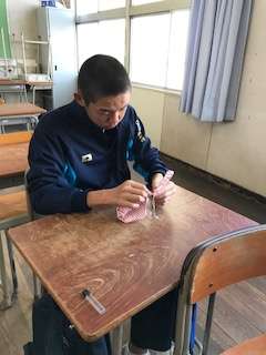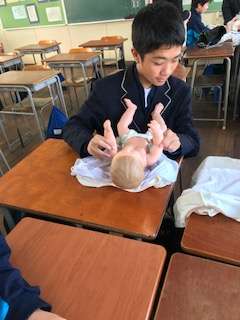 赤ちゃんお世話体験・公務員体験・シュシュ作り体験中です。