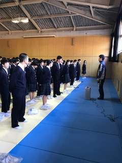 2年生朝の学年集会では、懐かしの歌「トイレの神様」をみんなで聴くことから、スタートしました。校舎のトイレが新しくなり、まずは、一人ひとりがスリッパをきちんと揃えることから意識していこう、という話をした所、さっそくお互いに声をかけあっている姿に、ほのぼのしました。「トイレには それはそれはキレイな女神様がいるんやで だから毎日キレイにしたら女神様みたいに べっぴんさんになれるんやで」 心の中からべっぴんさん目指しましょう!
