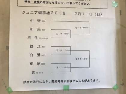 男子バスケ部、2月4日のOJB大会でリーグ戦、2勝0敗で通過しました。今日からはトーナメント戦になります。本日の試合は、会場が相生中で、第2試合(10時20分から)です。応援よろしくお願いします。