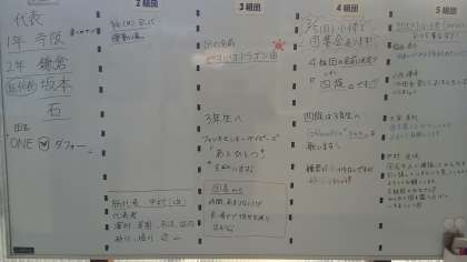【写真は『団活動』お知らせホワイトボード。休み時間などは子どもたちが見てワイワイ言っています】