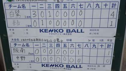 3月21日(水)白鷺中学校会場で第1試合目9時開始予定です(15〜20分早まる可能性が高い)。対戦相手は阪南中学校に決まりました。さらに自己かいしん(改心・改新・改進・快心)→チーム力向上をして、目標・目的達成できるように頑張ります。よろしくお願いします。