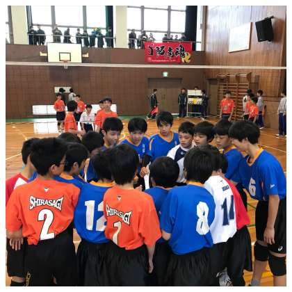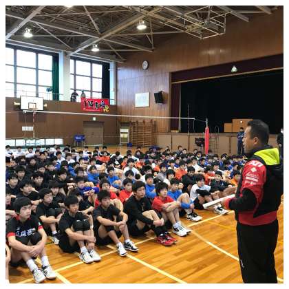 本日21日春分の日は青木カップ(1年生大会)に参加しています。1年生18人がユニフォームを着用して、全員で戦い、応援しています。初戦の茨田北中学校を25-22で下し、勝利しました。