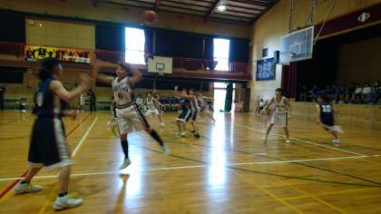 女子バスケットボール部が春季総体2回戦で堀江中学校と対戦して前半終了で14対19でリードされてますが、流れがこちらにきています。後半で逆転してほしいものです。