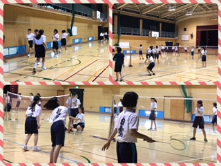 バドミントン部 1年生をたくさん迎えて活動しています。初心者の1年生も多く、先輩達が見守りながらトレーニングに励んでいます。