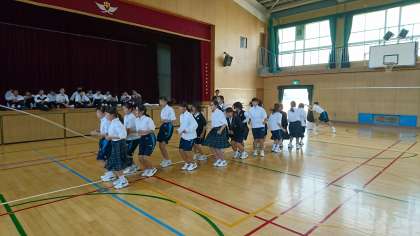 一年の一泊移住の夜レクの大縄飛びの練習をしています。なかなかうまくいかないこともありますが本番ではいい結果になればと思います