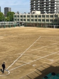 本日も一泊移住の夜レクの大縄飛びの練習をしています。必死に飛ぼうと練習しています。クラスでどうしたらいいか話ながら練習しています。