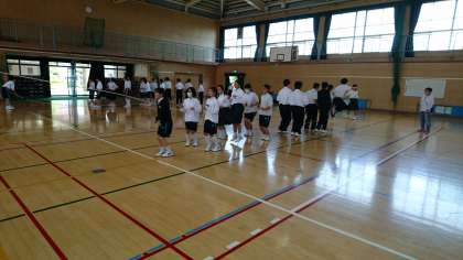 本日も一泊移住の夜レクの大縄飛びの練習をしています。必死に飛ぼうと練習しています。クラスでどうしたらいいか話ながら練習しています。