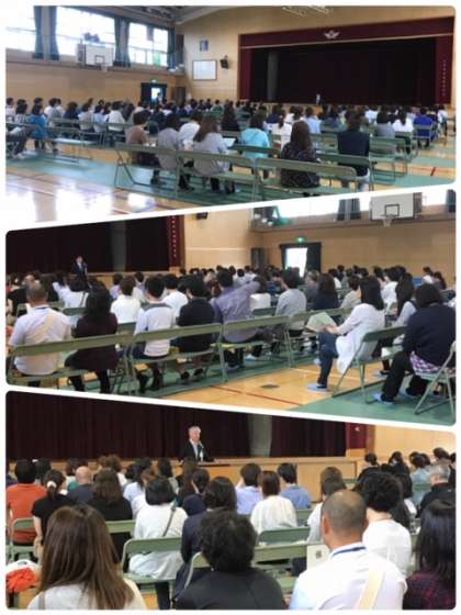 平成30年度PTA予算総会、委員総会が行われました。委員総会では150名程の委員さんと全教職員の方が参加されて自己紹介、年間活動予定等、活発な話し合いが行われました。皆さん一年間PTA活動にご参加、ご協力よろしくお願いします。