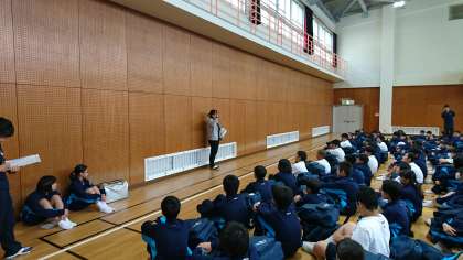 退館式です。いよいよ日高から去っていきます。天気もよくまたいろいろ都会では体験できないこともたくさんできたことかと思います。この体験が明日からの学校生活でいかせればと思います。土産話をまたたくさん聞いてみてください