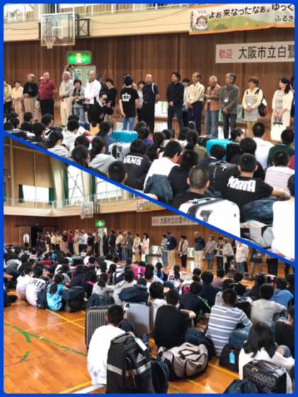 たくさんの方に迎えていただいた、盛大な入村式。NHKさんも取材に来られました。今回の白鷺中の修学旅行には、地元のテレビ局が2つ、新聞社が1つ、その他、地元の地域紹介をする雑誌社も取材に来られる予定です。