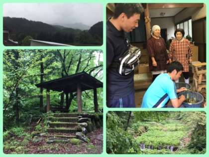 わさび農家さんでの収穫や手入れ体験のあと、温泉に連れて行っていただいてます。
