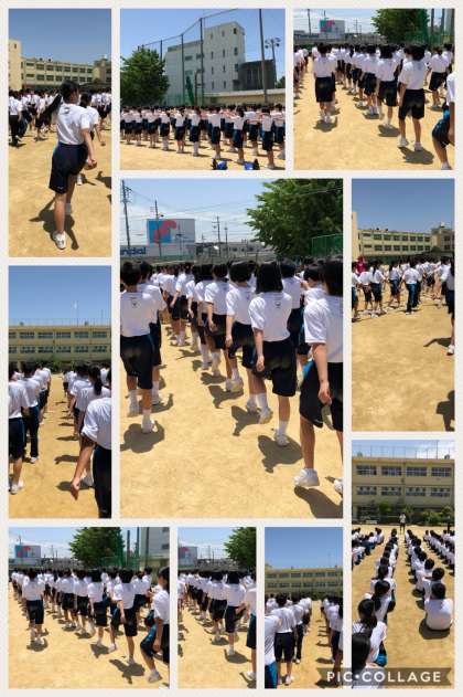 雲ひとつない中、行進練習が行われています。