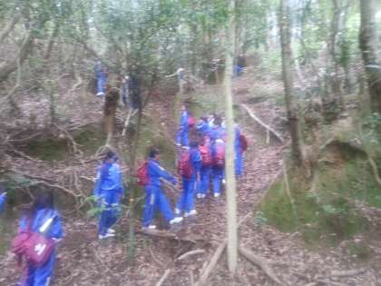 2日目は、朝から登山をしています。とても急な斜面もあり、みんな悪戦苦闘しています。