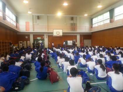 乗車し、学校へむかいます。