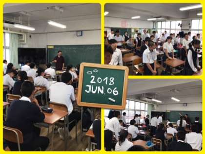 ブラン先生、坂本先生、岡田先生の「今までに…したことがありますか?」の質問に対する答えを考えて解答します。答えを書くワークシートがビンゴゲームになっていてパーフェクトまであと1つの人がいました〜おしい!!!