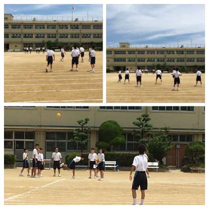 2年の体力テストです。写真はハンドボール投げの測定中です。昨年より記録は上がったかな?