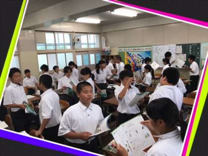 会話文をペアで読み合う学習です。英文を見ながら読むのではなくて、教科書をちらっと見て、英文を頭に入れて読み合います。元気な声が響いていました!教科書を見ないで話す生徒もいて、楽しいペアワークの時間はあっという間に終わりました。期末テストも近くなってきました。授業で言われたポイントをしっかり学習しましょう。