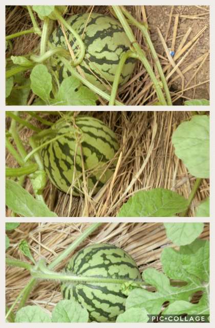 元気アップ農園で、スイカの小玉を3つ発見しました。順調に大きく甘いスイカになりますように♪