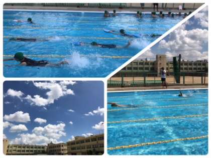 「今日は、ぜったい気持ちいいで〜〜!」と言ってプールへ来た1年生。