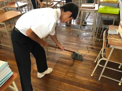 教室の油引きをおこないました。