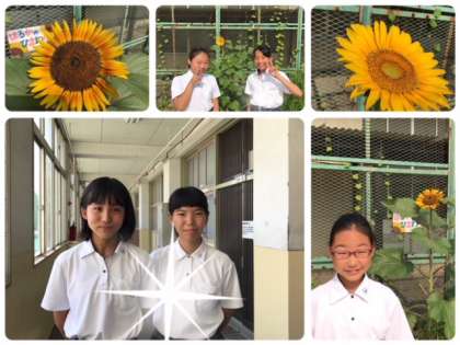 技術室前のひまわりが次々に花を咲かせています。しっかりとまっすぐに伸びた茎の先に咲くひまわりは白鷺中生の笑顔のようです!