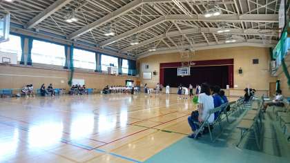 女子バスケットボール部の1、2年のブロック大会が白鷺中学校で行われています。白鷺は2回戦からで第4試合ですので、1時開始の予定です。