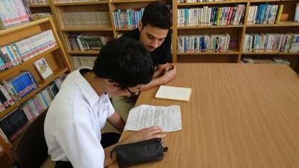 C−netのブラン先生に、スピーチコンテストに向けて発音練習をしてもらい、内容と関係のあるアメリカの歴史教えていただいている様子です。大変勉強になりました。