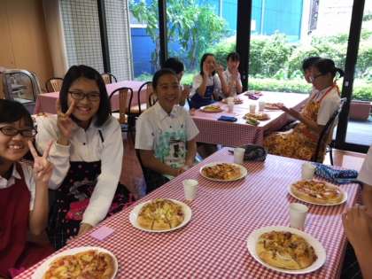 今日は城南短期大学の先生から調理実習にお招きいただき、ピザとゼリーを作りました。生地をこねるのは難しかったですが、城南短期大学の先生からコツを教えていただきフワフワに出来上がりました。ゼリーはグレープフルーツの皮を器にし、果汁たっぷりのゼリーが完成しました。とても美味しくいただきました。