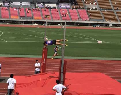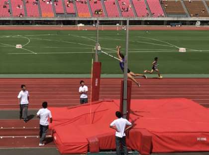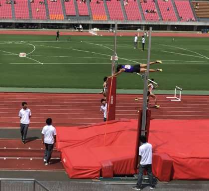 来年の日本選手権出場を狙う社会人・大学生・高校生に混じって、棒高跳出場の唯一の中学生として勝負を挑みました。