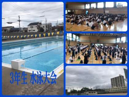台風21号の後、本校のプールは多くの飛来物によりプールが使用できない状況になり、1年生、2年生の水泳大会が中止となりました。そんな中、「3年生に最後の水泳大会を!」とたくさんの方がご尽力くださり本番を迎えることができました。本当にありがとうございました!!