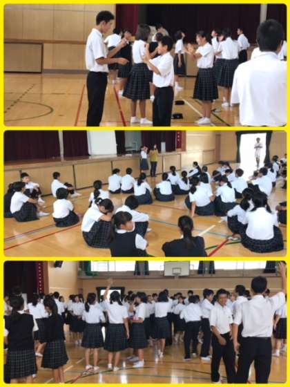 朝の集会。校外学習の班で盛り上がりました。