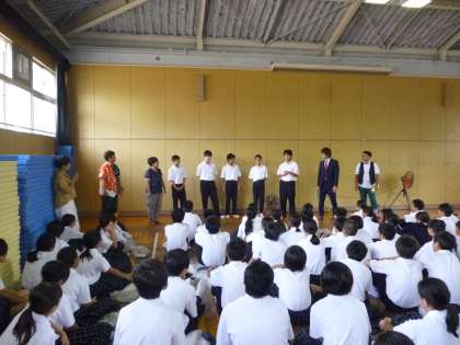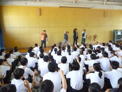 9月11日(火)の5,6限を使って1年生は笑育の取り組みを行いました。松竹芸能の芸人さんが来られて、漫才を披露してくれたり、講和があり、6時間目はワークシートを使ってボケを考える取り組みを行いました。10月22日の発表目指して、漫才の発表を通じてコミュニケーション力や発想力が身につけられればと思います。