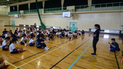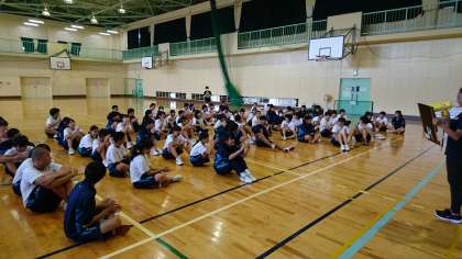 緑団遠足です。レクレーションの中間発表です。最終種目で逆転をねらいます。