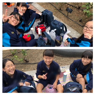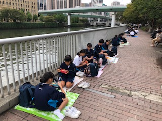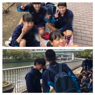 中之島緑道で昼食をとりました!川を船が通るたびに大興奮。
