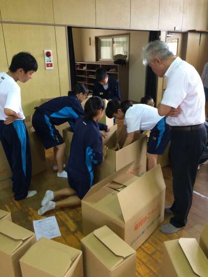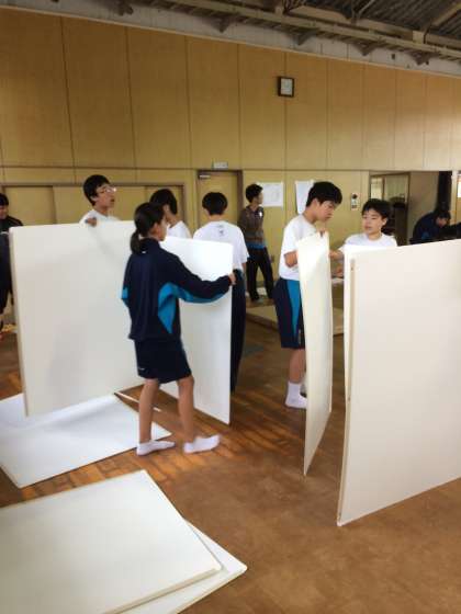 「段ボールベッド」と「避難スペース」の組み立てです。