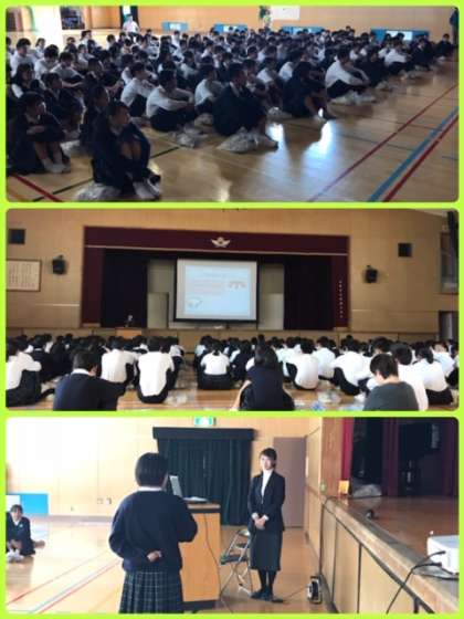 今日の5時間目、大阪地方裁判所裁判官・渡邉真実氏に来校いただき、3年生に出前授業をしていただきました。この授業はキャリア教育と社会科のコラボ学習です。実際に今、公民の授業で日本国憲法を学習している3年生にとって、キャリア教育の視点からの今日の授業は、これから職業選択・決定をむかえる3年生にとって、とても有意義なものになりました。お忙しいなか、来校いただき、ありがとうございました。