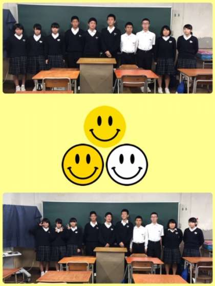 3年生委員長、みんな揃ってハイチーズ。。。 次の大きな仕事は、中学校生活最後の合唱コンクールでのクラス紹介ですね。