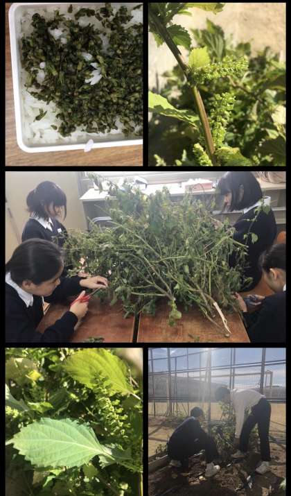シソの枝から実だけをハサミで摘んで、佃煮にしてもらってご飯にかけるふりかけにしてもらっている部員も居ます。