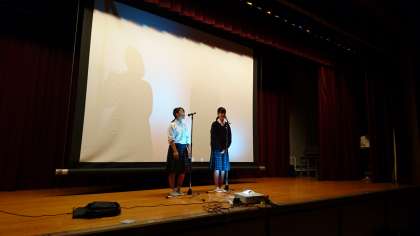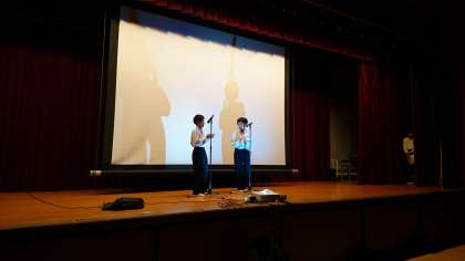 文化祭に向けて1年生の笑育の代表者が舞台練習しています。